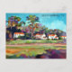 This postcard features a landscape painting made with vinyl paints and coloured crayons of Mission Historical Park Santa Barbara, CA.