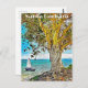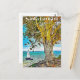 Santa Barbara, California features a vintage retro art travel image which shows a eucalyptus tree on the coast in Santa Barbara, California.