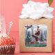 A Christmas sticker featuring Santa slam dunking a basketball.