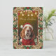 Spread holiday cheer with this absolutely adorable Christmas card featuring a sweet basset hound dressed as Santa in a red suit and hat, framed by an ornate gold border with classic holly leaves, red berries, and golden ornaments. Perfect for dog lovers, hound owners, or anyone who believes Santa’s best helper has long ears and a droopy face! Premium cardstock with rich, festive colors – inside blank or customizable. The cutest, classiest way to wish everyone a very Merry Christmas!
