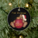 Baby's first Christmas keepsake ornament featuring a teddy bear in a red stocking cap holding a big red tree ball! You can add baby's name, date and time of birth, height and weight, and the current year to this fully customisable keepsake holiday ornament.