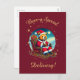 Deliver holiday cheer with this whimsical Christmas card featuring a bear dressed as Santa, sitting in a sleigh piled high with gifts. The scene is set against deep red with golden stars and a moonlit sky, creating a magical holiday atmosphere. The front text, "Bear-y Special Delivery!", is written in glowing golden script for an extra festive touch. The back design showcases a sleigh silhouette with twinkling stars, and the message reads: "May all your wishes come true this Christmas! - [Your Name]." Fully customisable, this card is perfect for sending heartfelt holiday greetings to your loved ones!