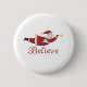 Santa Claus design greeting cards, tote bags, mugs, T-shirts, and more featuring Santa playing a horn and text that reads "Believe"!