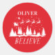 Santa believe Christmas traditional modern holiday red and white favour sticker gift design.