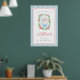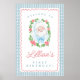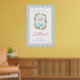 Vintage style welcome sign featuring a classic Santa illustration framed in blue gingham with soft coquette inspired roses. The design blends nostalgia with a delicate floral aesthetic. Perfect for Christmas birthdays, festive parties, or seasonal events.