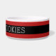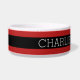 Your cat, dog's name is printed right on this cute and modern personalised Santa belt buckle pet food or water bowl in red with a black belt and gold faux glitter belt buckle that is a fun holiday decoration and Christmas or winter holiday gift filled with homemade dog bones or kitty treats for your best friend, and a fun hostess gift if you are staying with an animal lover. Click "customise further" to change fonts or text placement.