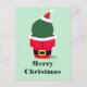 A merry Christmas postcard featuring a cactus in a Santa outfit on a light green background.