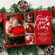 Modern, photo collage Christmas birth announcement card. Announce birth of your baby with this holiday birth announcement card. Design features 4 photos of the baby , typography script ''santa came early'' in trendy lettering. Personalise further with more details on the back.