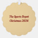 This unique sports themed Christmas ornament card features illustrations of an evergreen holiday wreath with Santa capped baseballs.  Customisable "Season's Greetings" message in centre and room on the back to add your own personalised holiday message for family, teammates, customers and more.