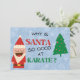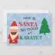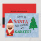 Kids love Christmas jokes. This cute kids' cartoon Christmas card has a funny joke about Santa and Karate on the front. Inside the card is a cute red surface with Santa's belt. This is a perfect greeting card for kids.