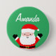 Large Santa cartoon name button for Christmas party at home or office. Cute drawing design with red nose. Script typography template for names. Personalised name badge buttons for corporate Holiday party. Custom decoration for company X-mas celebration. Suitable for kids and adults.