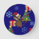 santa christmas monkey emoji round clock