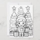 Santa Christmas Official Nice List custom certificate, with cute dog. And Christmas tree colouring page with gifts and cute girl.