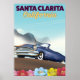 Santa Clarita, California, USA retro car vacation poster.