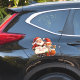 Santa Claus and a joyful fox hold a festive Merry Christmas sign amid falling snow, radiating holiday cheer, warmth, playful charm and family celebration for seasonal greeting cards and designs.v