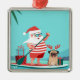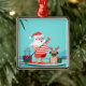 Santa Claus and His Pug on a Surfboard Metal Tree Decoration