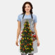 Santa claus and reindeer behind a christmas tree.j apron