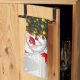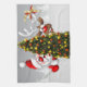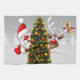 Santa claus and reindeer behind a christmas tree.j tea towel