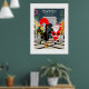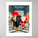 Santa Claus and Rooster Champagne Toast to New Yea Poster