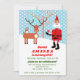 This modern design is perfect for a Christmas, winter, or December 1st Birthday party. It features two buddies, two Christmas beloved characters having fun together in the snow: Santa Claus and the reindeer, Rudolph, maybe after delivering all the presents. The snow is represented by white polka-dots on soft blue background. The pink and yellowish background is also available if you prefer these colours. On the back of this invitation, there’s a cute Snowman and the same polka-dots. All text is personalizable with your details and if you like you can pick another font and colour for it. Maybe you like the design but hate red and green together? It's easy to pick other colours. Problem solved! On the back, there are also white polka dots and a groovy snowman.