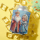 Santa Claus and Snow Maiden Celebrating Christmas Can Cooler