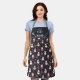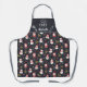 Cute dark grey family matching apron featuring a fun pattern with lovely cartoon snowmen with red and scarfs and red and black hats, and adorable little Santa Clauses, decorated with snowflakes, green and red holly leaves, and red and white candy canes. The caption on the upper part, decorated with a stylised whisk and rolling pin, reads Chef in white lettering and is customisable with your name.