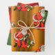 This vibrant and colourful set of Christmas wrapping paper all feature the man himself: Santa Claus. He's dressed in his traditional red velvet suit and Santa hat, and is leaning over to open his Santa sack - full of toys of course! This three wrapping paper set features the same Santa pattern on a trio of different, very festive colours including gold on the top sheet, green on the middle, and a very merry red on the third sheet.