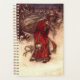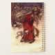 Planner featuring Arthur Rackham’s illustration Santa Claus (1907). A red robed Santa Claus carries a bag of Christmas presents in a snowy wood. Elves fly by his side. A jolly gift for Christmas!