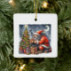 Cute Santa with a Christmas tree and gifts on a ceramic Christmas ornament. Text on back can be changed. Watercolor illustration with AI assisted graphic purchased with commercial use. Artwork: RedHeronLighthouse
