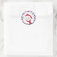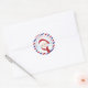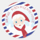 Wrap up mailing or your holiday gift with a pretty round seal that features an air mail envelope's borders in dark blue and red. It has an illustration of Santa Claus in a cosy scarf and winter hat. Santa likes to use snail mail. He’s kind of an old-fashioned guy! Total personalizable text reads AIR MAIL NORTH POLE POST OFFICE