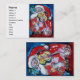 Colourful, whimsical and artistic acrylic painting ,Santa is playing violin in the snowy winter night ,an owl ,floral ornaments,winter plants, holly berries in bright red,green,white,blue,yellow colours.