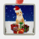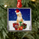 Santa Claus Cat with Christmas Gift Metal Tree Decoration