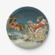 Santa Claus Christmas Antique Sleigh Reindeer Paper Plate