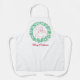 White kitchen apron featuring a festive design of Santa Claus surrounded by a holly wreath, along with the text "Merry Christmas" in red. Perfect for holiday cooking and baking.