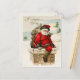 Customisable Vintage Santa Claus Christmas postcard that portrays Santa coming out of a chimney with a bag full of toys on his back