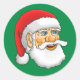 Santa's head on a round sticker with a green background.