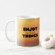Santa Claus with glasses, in cool mode, facing the sunset. Message: enjoy the little things.