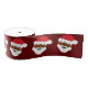 Christmas ribbon featuring Santa Claus faces with brown skin tones, wearing red and white hats on a burgundy background.