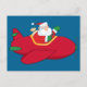 Santa-Claus-Flying-A-Plane-And-Waving Holiday Postcard