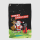 Santa Claus golfer Merry Christmas on green Golf Towel