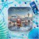 Add first-class festive charm to your holiday table with these Santa Claus Greeting from the Airport paper plates!