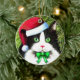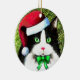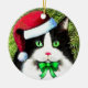 Delightful black and white cat dressed up for Christmas. Check out the back of the ornament!