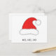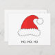 Santa Claus hat Christmas postcard. Red funny Santa's hat in cartoon style illustration card. Ho, ho, ho, Merry Christmas.