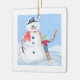 Santa Claus Helper Building A Silly Snowman Ceramic Ornament