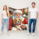 Santa Claus Holding Beagle Christmas Art Fleece Blanket