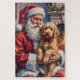 Santa Claus Holding Goldendoodle Christmas Art Jigsaw Puzzle