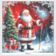 Santa Claus stands with a glowing staff beside a colourful Christmas tree, surrounded by festive presents.