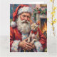 Santa Claus Holding Sphynx Cat Christmas Art Card