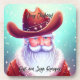 This western-style Christmas design shows Santa Claus in a cowboy hat, with snow on a pretty blue background.