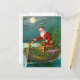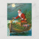 A beautiful vintage postcard featuring Santa at night in a boat filled with toys.